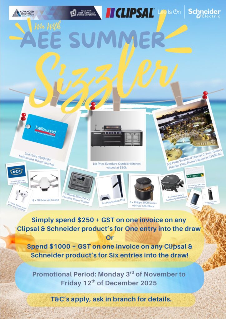 Simply spend $250+gst on one invoice on any Clipsal and Schneider products for 1 entry! Spend $1000+gst on and Clipsal and Schneider products for 6 entries!!!